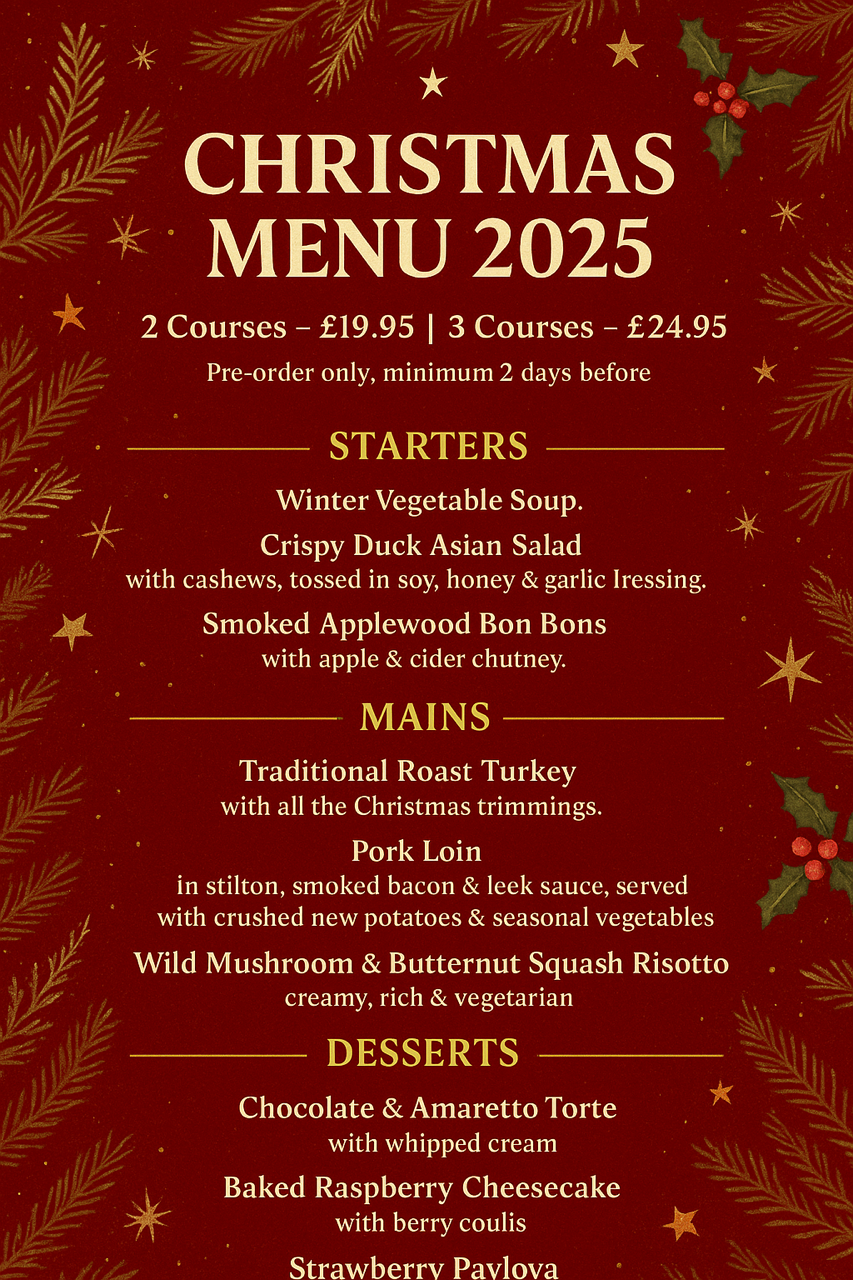 Christmas Menu available Wednesday to Saturday, 26 November to 20 December, by pre order only 2 days in advance.